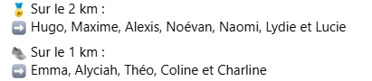 Sur le 1km – Poussin : Emma – 1ère fille / Théo / Alyciah – 3ème fille / Charline