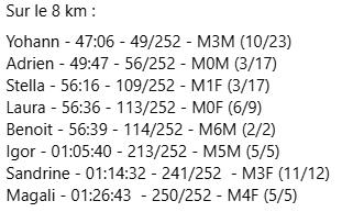 D’autres coureurs ont participés à d’autres évènements :